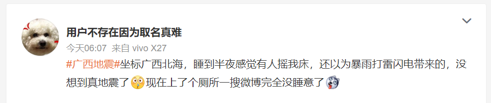 网友:半夜被摇醒