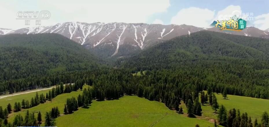 6月中下旬,地处新疆哈密的塔水河牧场,绿油油的青草铺满了山坡,五颜六色的野花映衬其中,随风飘摆。蓝天白云、雪山松林、花海草地共同构成了一幅壮美画卷。