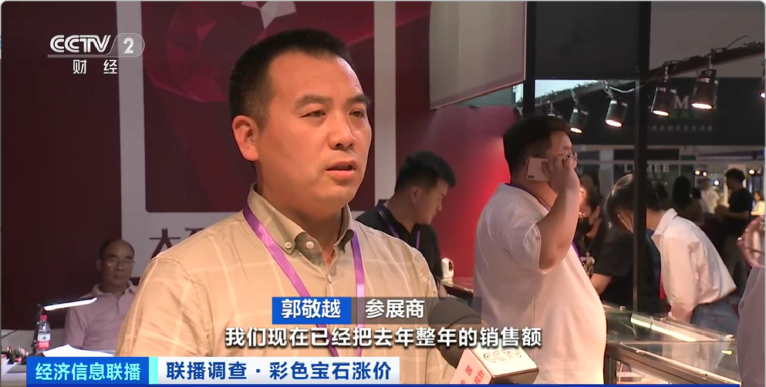 在上海国际珠宝展上,彩色宝石是消费者关注度最高的珠宝品类之一,郭敬越是一家珠宝公司的负责人,他告诉记者,今年以来整个彩色宝石市场非常火爆。