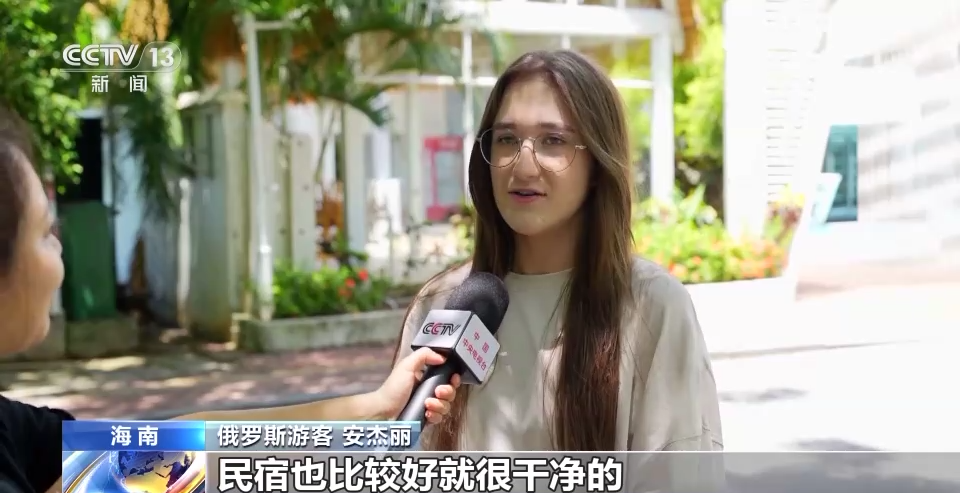 俄罗斯游客 安杰丽:民宿也比较好,就很干净的,也有游泳池可以游泳。附近也有很多小吃,好吃的。