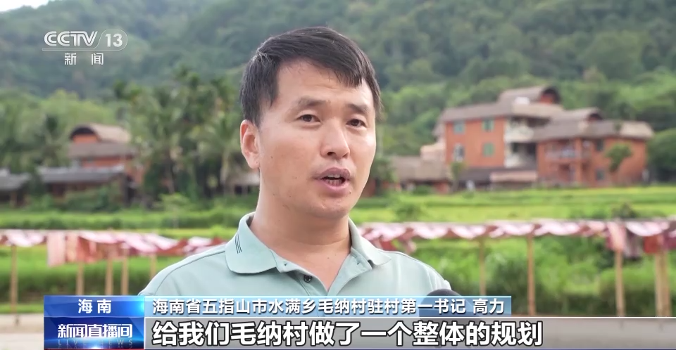 海南省五指山市水满乡毛纳村驻村第一书记 高力:我们市里边是请了中青旅给我们毛纳村做了一个整体的规划,比如说我们村口的综合游客服务中心,还有村内的一些雨林树屋、精品民宿、稻田餐吧。