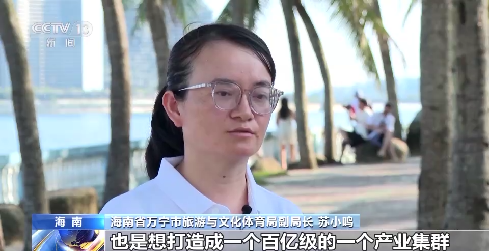 海南省万宁市旅游与文化体育局副局长 苏小鸣:体育+旅游,是想打造成一个百亿级的产业集群。不单单是冲浪,比如海上运动、水上运动,包括低空的飞行,我们都想要逐步把它建设起来。