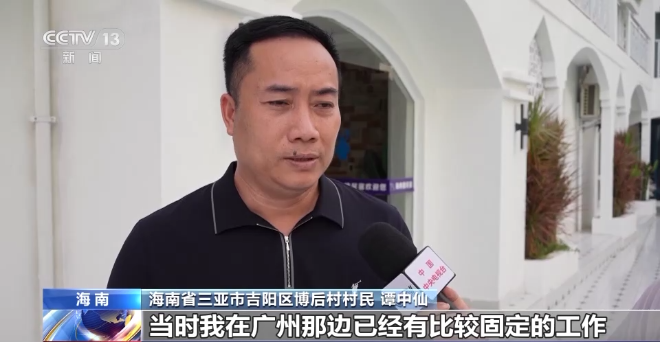 海南省三亚市吉阳区博后村村民 谭中仙:当时我在广州那边已经有比较固定的工作,收入也不错。从外面回来开了我们这第一家民宿。