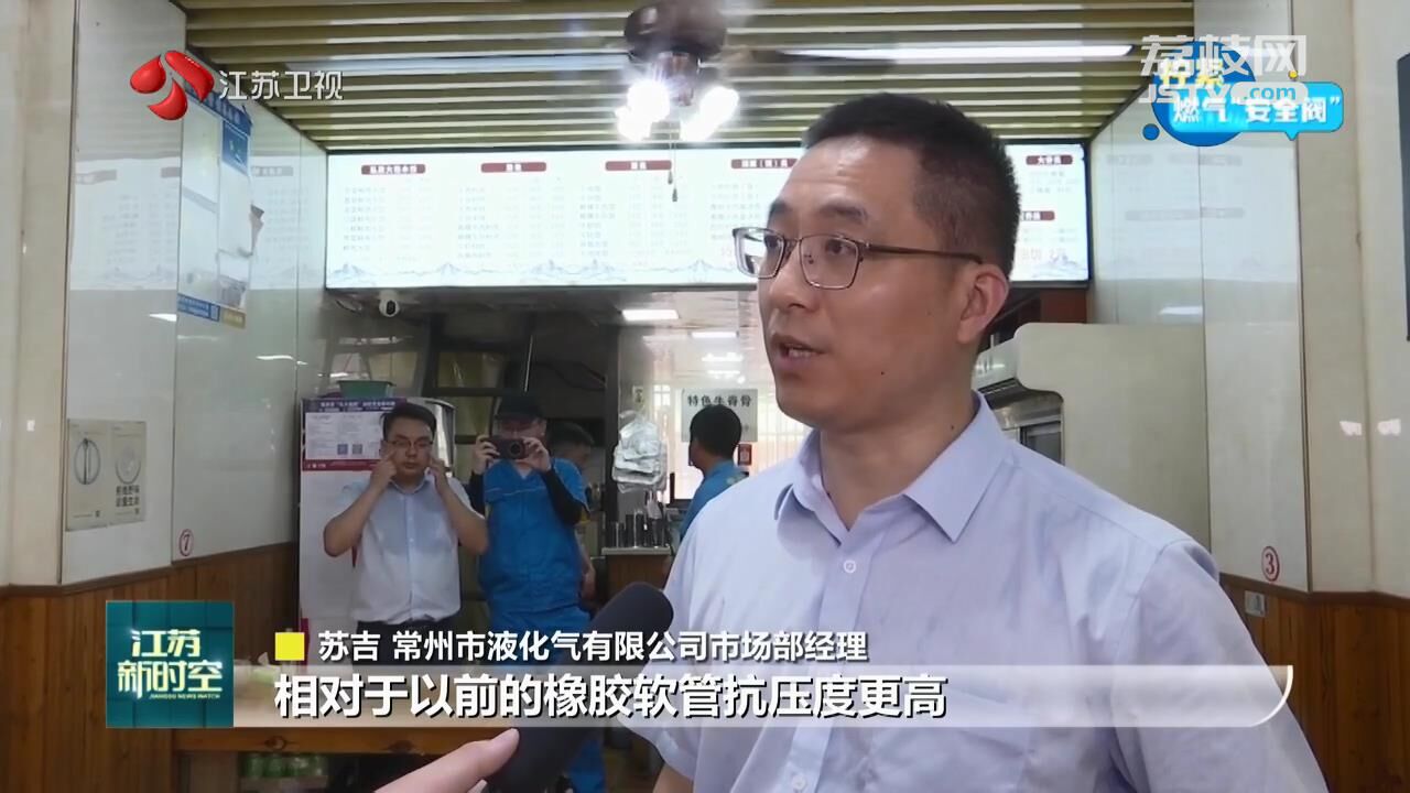 常州市液化气有限公司市场部经理苏吉说:“金属包覆管相对于以前的橡胶软管抗压度更高,同时防鼠咬、耐高温,用户使用金属包覆管比以前的橡胶软管更安全。”