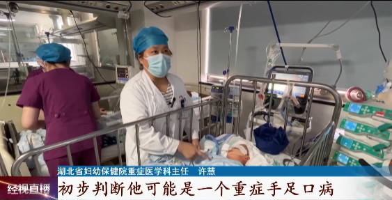 湖北省妇幼保健院重症医学科主任许慧介绍,阳阳在转院过来前,高烧到了40度,心率快,高达每分钟200次,呼吸快,血糖也高,还没有尿。