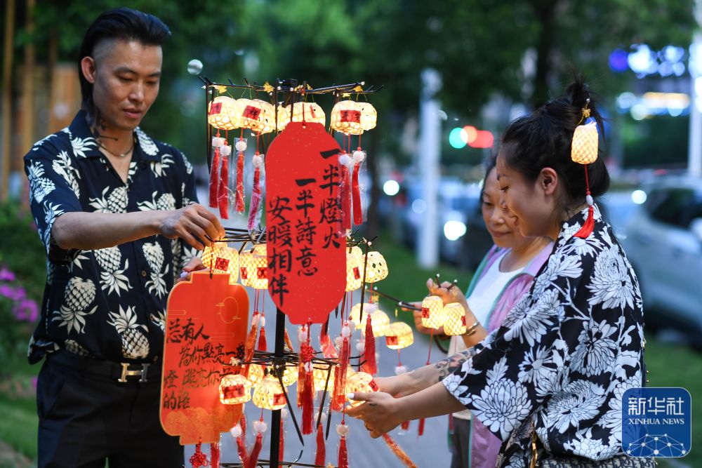 ↑6月30日,村民在贵州“村超”足球赛场附近整理售卖的小灯笼。新华社记者 杨文斌 摄