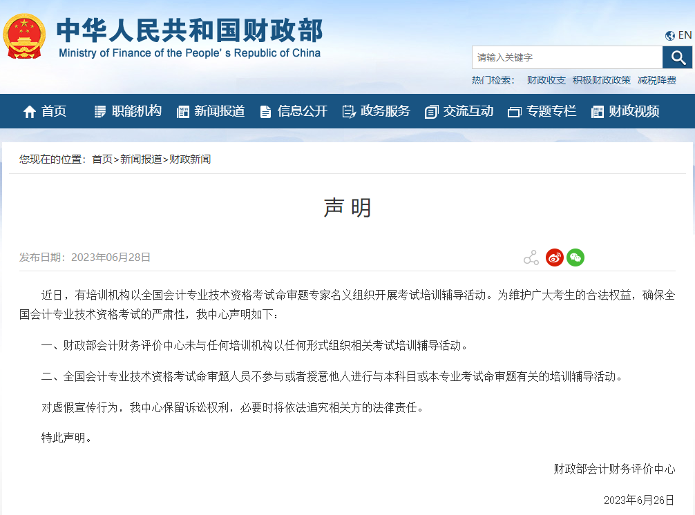 谣 言 财政部组织全国会计专业技术资格考试培训辅导活动?