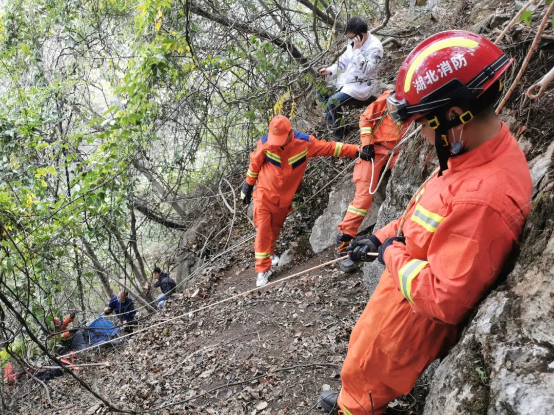 2022年11月5日,湖北黄石,一名驴友不慎从海拔500余米高的山崖坠落至30米处灌木林内,全身多处骨折,无法动弹。接警后,消防救援人员携带救生担架、绳索等工具前去营救,经过长达6小时紧张营救,成功将伤者安全运送到山下并送往医院接受治疗。