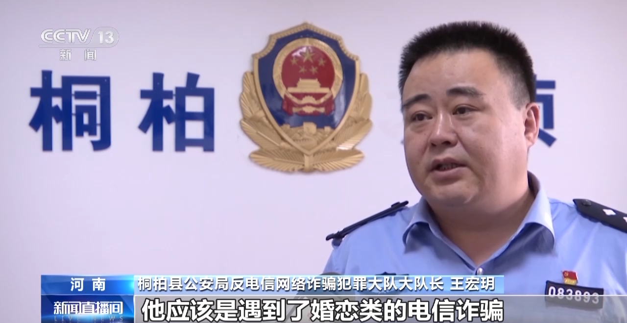 桐柏县公安局反电信网络诈骗犯罪大队大队长 王宏玥:侦查员到鞍山之后,根据他的取款情况分析,他应该是遇到了婚恋类的电信诈骗。