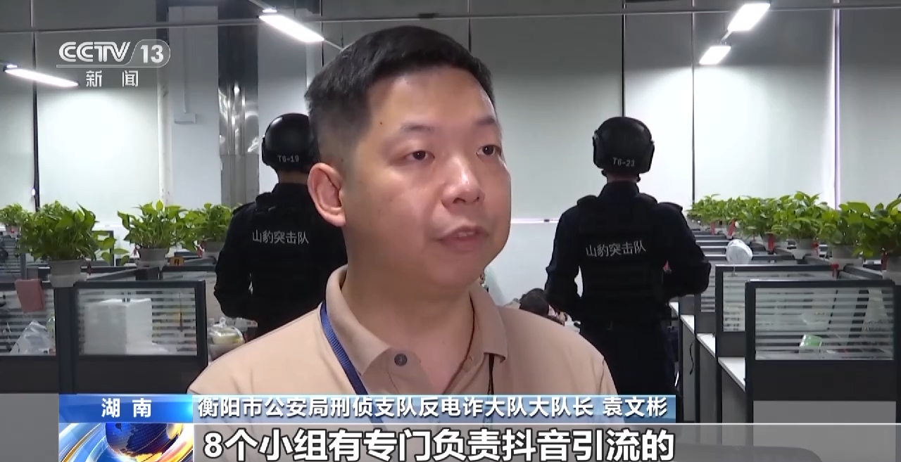 衡阳市公安局刑侦支队反电诈大队大队长 袁文彬:我们发现这个团伙一共设了8个小组,8个小组有专门负责抖音引流的,有专门冒充专家、客服来跟受害人进行进一步沟通的,有第一次减肥这个阶段完成以后第二阶段跟进的。