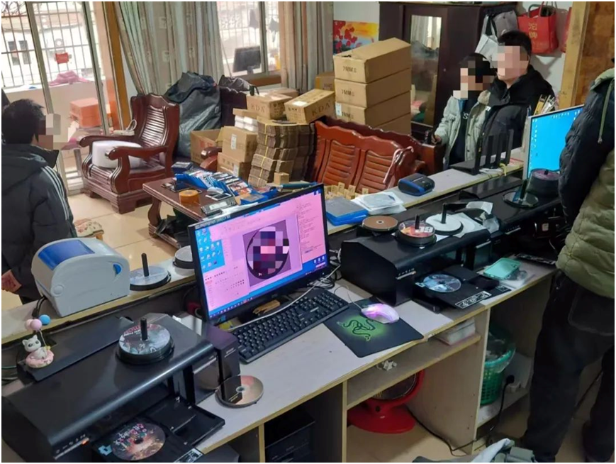 在查清犯罪事实后,近日,专案组采取收网行动,一举抓获邓某等犯罪嫌疑人5名,查获盗版电影、电视剧、综艺节目、少儿动画、演唱会音视频等31.7万余部(集、首),相关电子数据达2000TB,查扣盗版光盘4100余张,扣押作案电脑17台、作案设备37台、大容量硬盘200余个,涉案金额1000余万元。