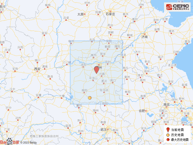 历史地震: 根据中国地震台网速报目录,震中周边200公里内近5年来发生3级以上地震共3次,最大地震是2022年7月6日在河南郑州市新密市发生的3.1级地震(距离本次震中19公里),历史地震分布如图。