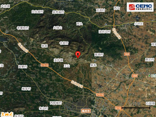 震中地形: 震中5公里范围内平均海拔约278米。