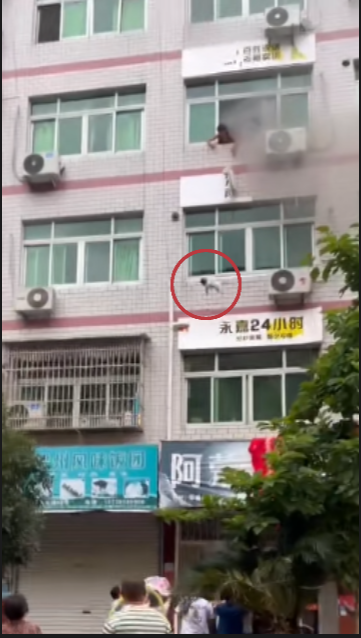 危急时刻,婴儿的亲属将孩子抛传给一楼的居民,众人合力拉起床单接住。