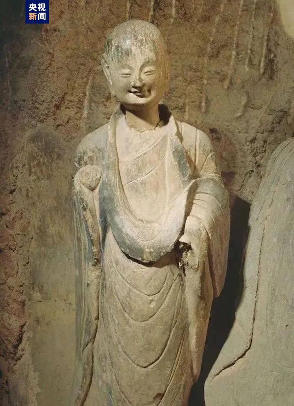 第133窟位于麦积山西崖上部,珍品较多,内容较为丰富。窟内藏有的小沙弥立像,因神态天真、微笑迷人,被誉为“东方微笑”。(总台记者 王妍)