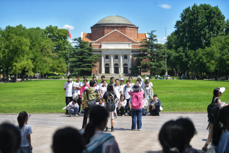 在北大未名湖畔,60余名身着统一白色校服、头戴小黄帽的中学生留下了一张珍贵的合影。领队教师刘先生说:“我们来自河南省许昌实验中学,趁着校园开放,特意在这次北京暑期游学中增加了北大的行程,想带孩子们来看看梦想中的校园。”