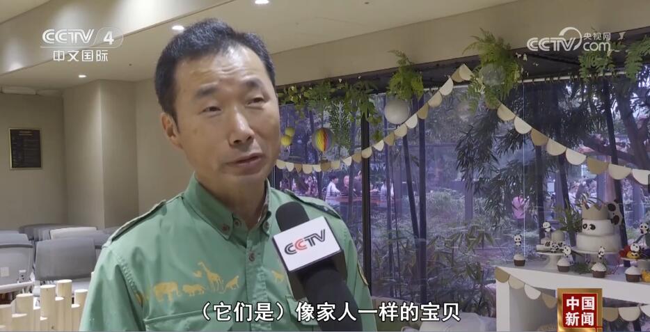 爱宝乐园熊猫馆饲养员 姜哲远: 我们的“宝”家族真的有家人的感觉,首先爱宝、乐宝、福宝的名字都是有含义的,就像它们名字的意思一样。它们是可爱,又给我带来快乐的宝物、可爱的宝物,还有幸福的宝物。对我来说,就像它们的名字一样,(它们是)像家人一样的宝贝。