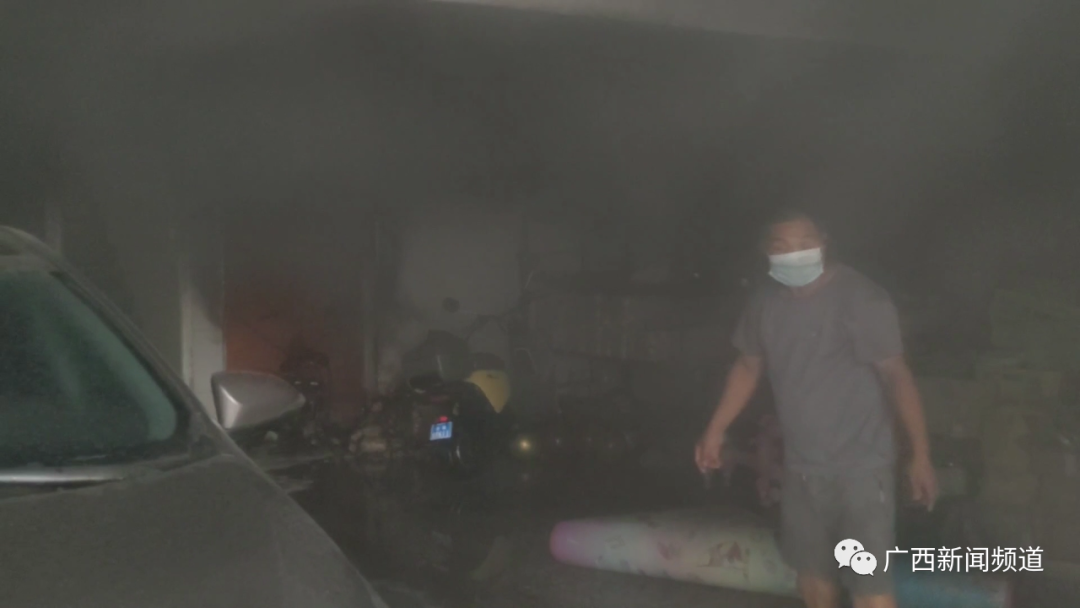 消防救援人员: 它一旦起火,马上有很多浓烟,30秒内就能充满这个楼梯间道,人在10秒钟之内,你就可以吸入那烟,直接就是昏迷状态。所以说,电车不要停在室内充电。
