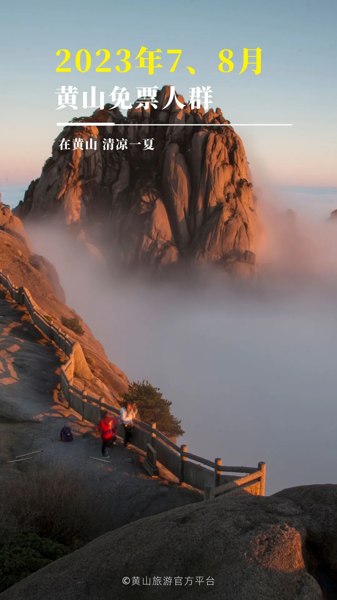 温馨提示:黄山风景区免票需要提前至少1天在黄山旅游官方平台门票预定页面预约0元票。