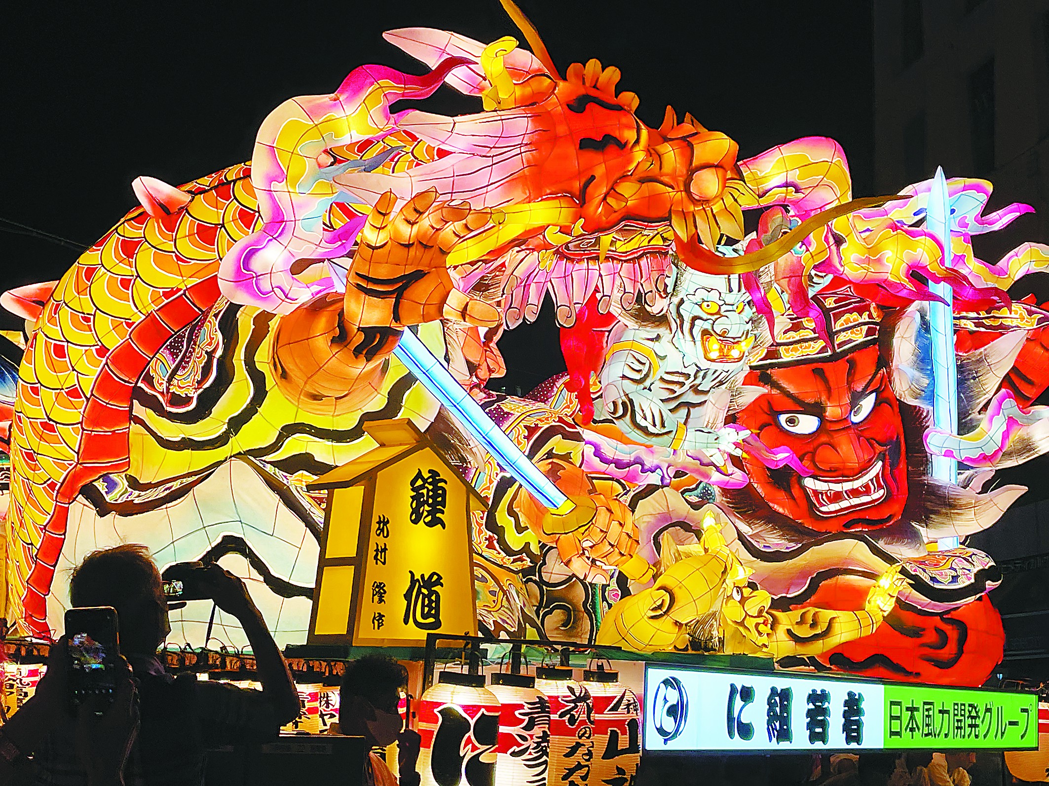 接下来的三步是勾墨、涂蜡和上色,是赋予睡魔表情的重要步骤。最后,当几十人协力把睡魔抬到2米高的花车底台上时,新的睡魔就算彻底完成了。睡魔团队的技师多师承名门,青森市自1957年起开始表彰“睡魔名人”,希望能将传统技法代代相传。外来的游客会在体验非同寻常的庆典之后,增加对这方水土和本地民风的了解。