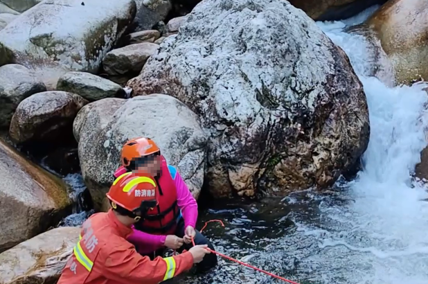 得知这个情况后,在山脚下露营的两名永州籍男子决定带着食物和饮用水也进入山中进行寻找,并依据驴友提供的导航轨迹地图在女驴友走失地附近的峡谷里面成功找到这名走失的女驴友。因为女驴友体力透支,加上膝盖部位受伤,几乎无法行走,于是,他们将食物和饮用水留给女驴友后等待消防救援。