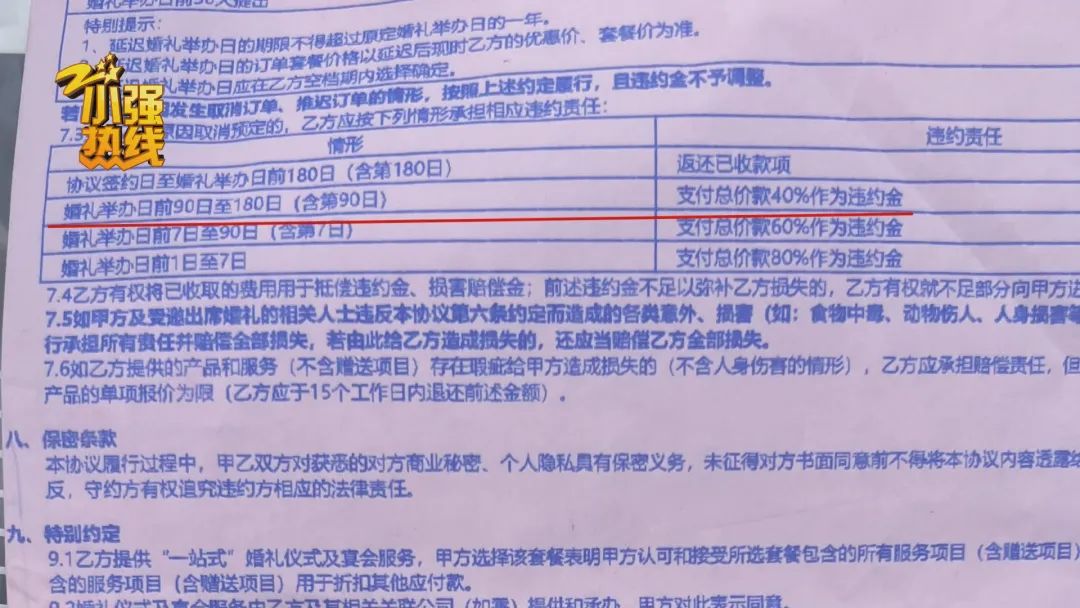 李先生提供了他和格乐丽雅之前签订的合同,合同约定,如果酒店方面违约,需要支付总价款的40%作为违约金。
