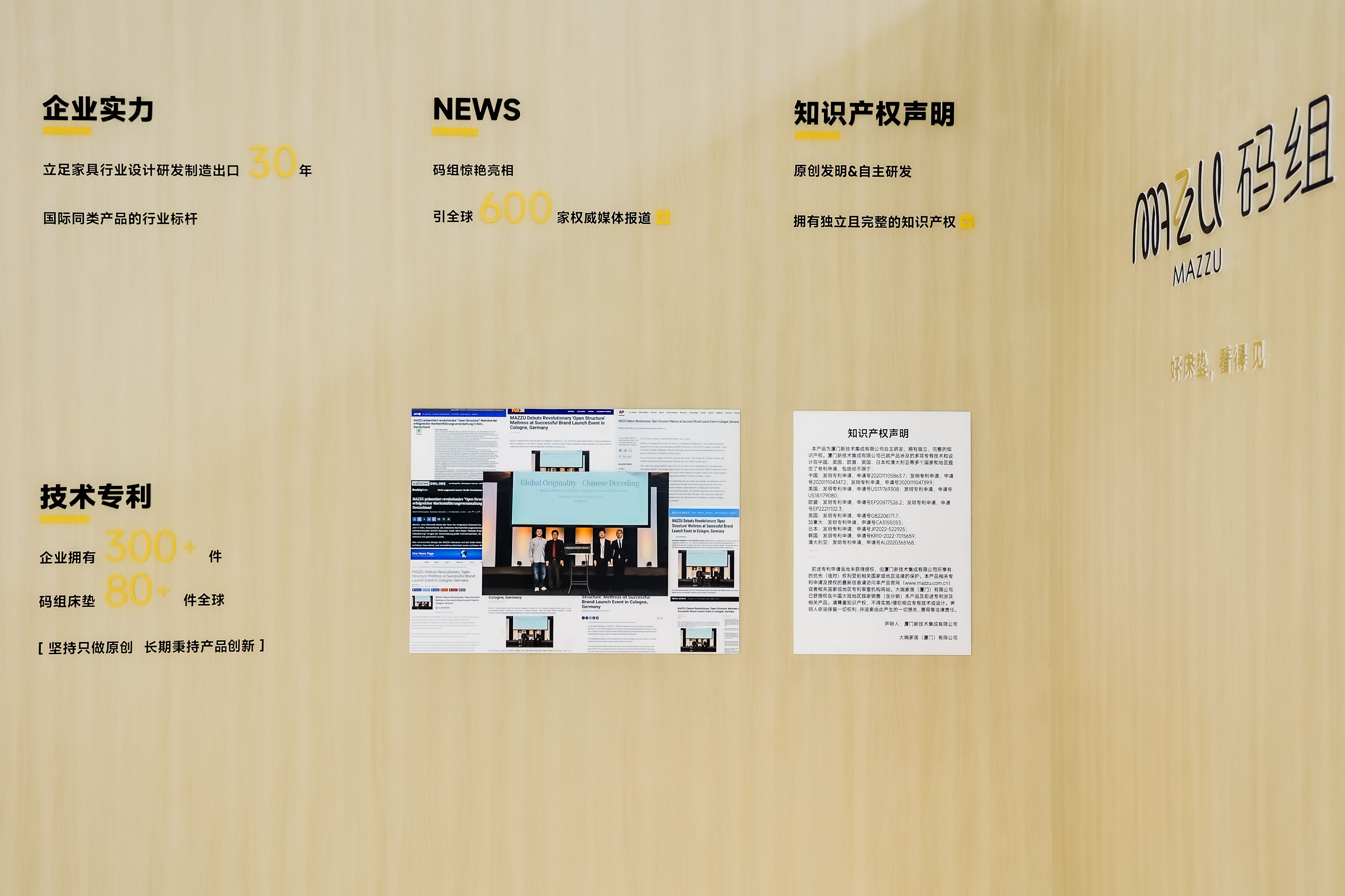 母公司的强大实力为码组MAZZU的诞生打下坚实基础。2010年,码组MAZZU的集团公司拓展品类开始涉足整屋家具,其中就有床垫类产品。历经13年探索和积累,期间不断升级迭代,以工匠精神去雕琢和研发产品,今年,随着技术走向成熟,码组MAZZU终于以一个独立的品牌形象面世。迄今,码组MAZZU已经在全球范围累计申请超过八十项发明专利。