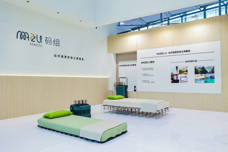 【阮建秀】:本次建博会是码组MAZZU在中国首次亮相。我们带来了两款革命性创新的床垫,分别是码组MAZZU室内床垫和码组MAZZU U系列多功能床垫。
