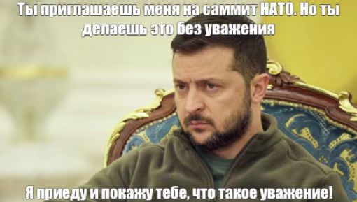 乌克兰独立新闻社11日在Telegram上报道称,泽连斯基当天就乌克兰“入约”前景和一些国家在乌克兰“入约”问题上犹豫不决发表强硬声明,并称“不确定就是软弱”。该媒体当天晚些时候转发这则帖子,并配上一张图。图片显示,泽连斯基坐在椅子上,表情严肃。图上的配文称,“你邀请我参加北约峰会,但你这么做时却不尊重我。等我到了之后就给你看看,什么是尊重!”