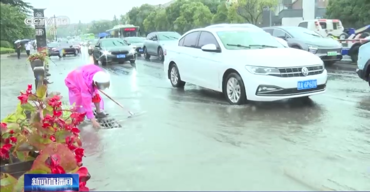总台记者 吴成轩:在西安曲江新区大唐芙蓉园西门的丁字路口,突如其来的降雨,导致积水基本没过脚踝,眼下正是暑假,很多游客来到西安旅游,对于大家的通行都是一个不小的考验,为了让大家通行更加便利,环卫工人及时上路,对路段下水口进行清理,以便将积水排出。