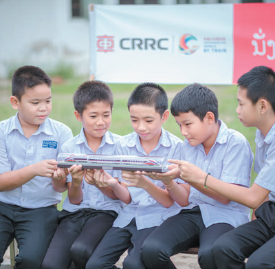 自2021年12月3日通车以来,中老铁路为便利两国民众出行、促进贸易往来发挥了积极作用。图为在由中国中车集团有限公司举办的“坐着火车看世界”老挝站活动中,万象宗佩中学学生观赏中老铁路动车模型。
