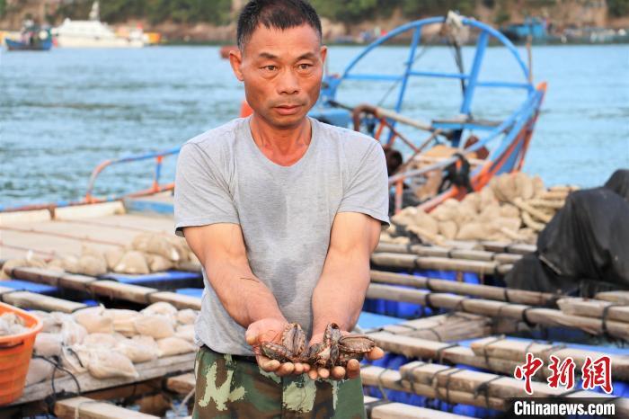 当中新网记者见到52岁的郭济武时,他正在位于霞浦县北壁乡东冲村的海上养殖渔排中查看鲍鱼长势。“养殖了150口(网箱)的鲍鱼,每年的净收入有六七十万元。”郭济武笑着说。