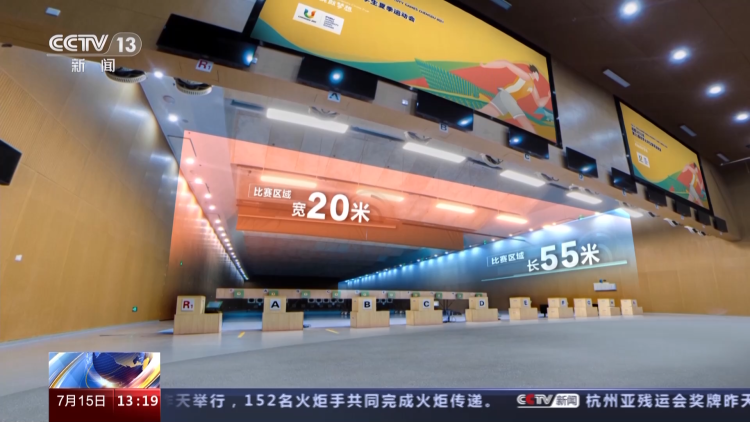 接下来,我们再通过全景虚拟技术,走进成都市射击射箭运动学校决赛馆的内部。大家现在看到就是决赛馆,比赛的区域长55米,宽20米,一共设有276个观众座位。