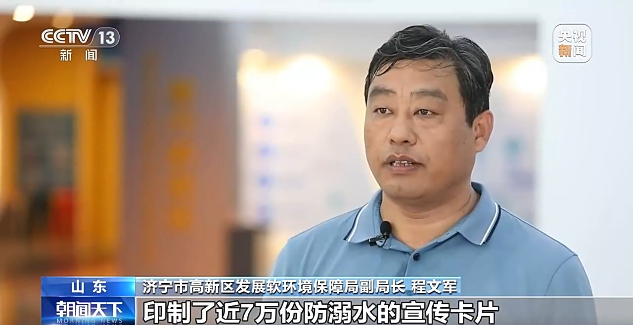 山东济宁高新区发展软环境保障局副局长 程文军:我们把防溺水作为教育重点,印制了7万份防溺水的安全卡片,发放到每个学生手中。