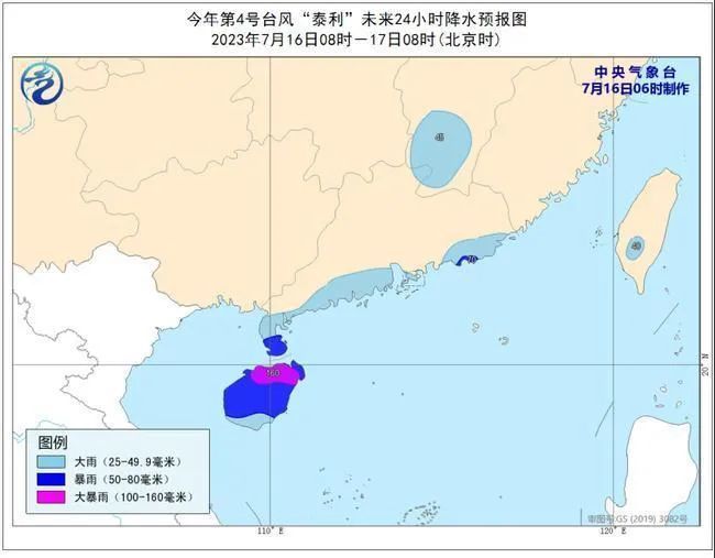 中央气象台7月16日06时继续发布台风蓝色预警: