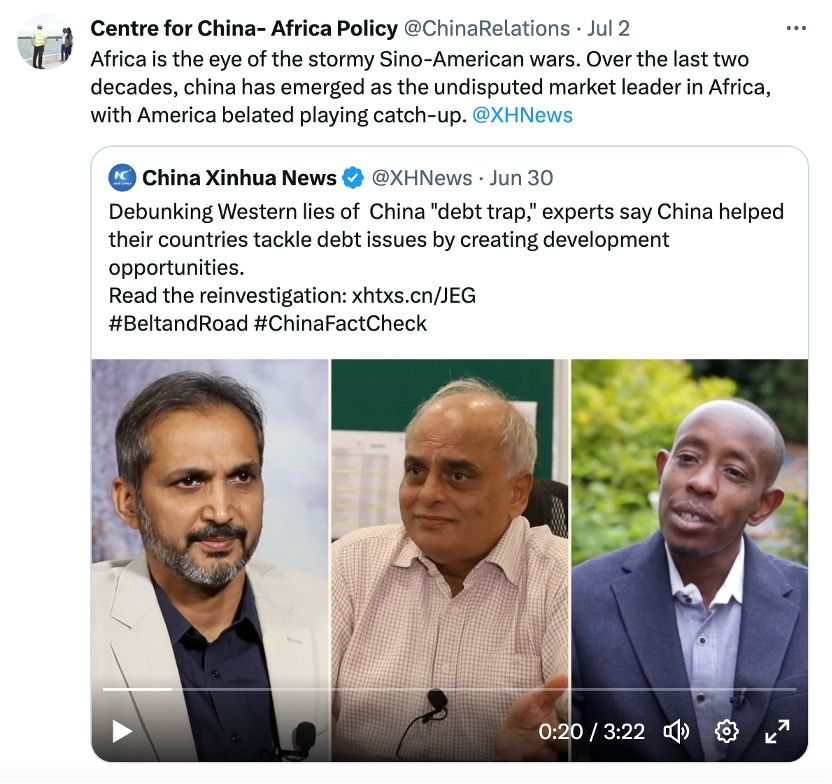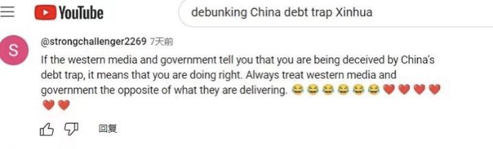 网友“强力挑战者2269”直言:“如果西方政府和媒体告诉你,你陷入了中国的‘债务陷阱’,那证明你做对了。对待西方媒体和政府宣传的信息,你得反着看。”