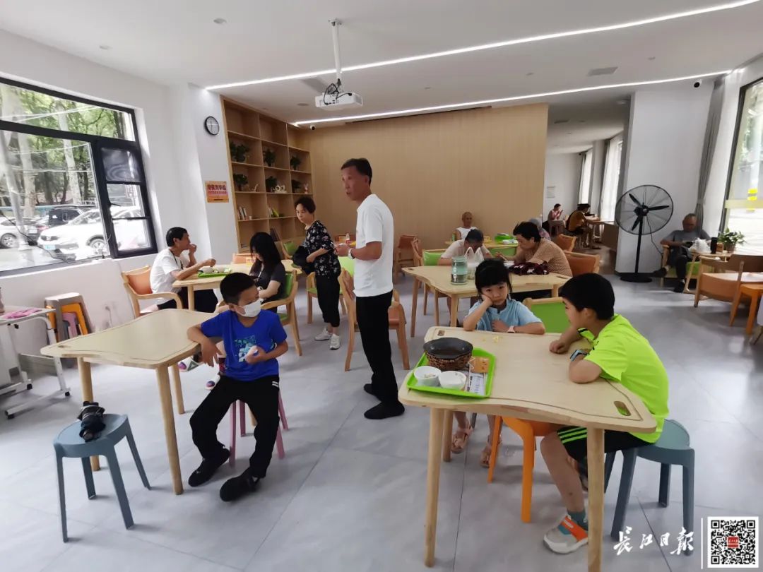 “家里就我们老两口,天气热不想做饭,在食堂吃既方便又实惠,而且每天菜品都不重样。”84岁的张奶奶和老伴住在惠中社区。半个多月来,她每天中午都来社区食堂打包两份盒饭。她看到程良谟和梁季林在搜集建议,就提出自己的想法:“我喜欢喝酸梅汤,帮我跟他们建议一下。”