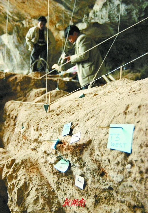 2004年,道县玉蟾岩,中美联合考古队在发掘工作中采用了当时具有国际先进水平的定位方法。