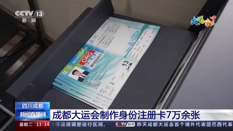总台记者 蒋林:这里就是注册中心的制证车间,成都大运会的一张证件,在这里将会经历打印、裁切、封装、塑封、电子信息的写入和电子信息的核验,在所有的流程完成之后,最后在上面加贴一张熊猫和星空的防伪贴纸,一张大运会的身份信息卡就制作完成了,而所有这些工作就是为了保证成都大运会的顺利运行。