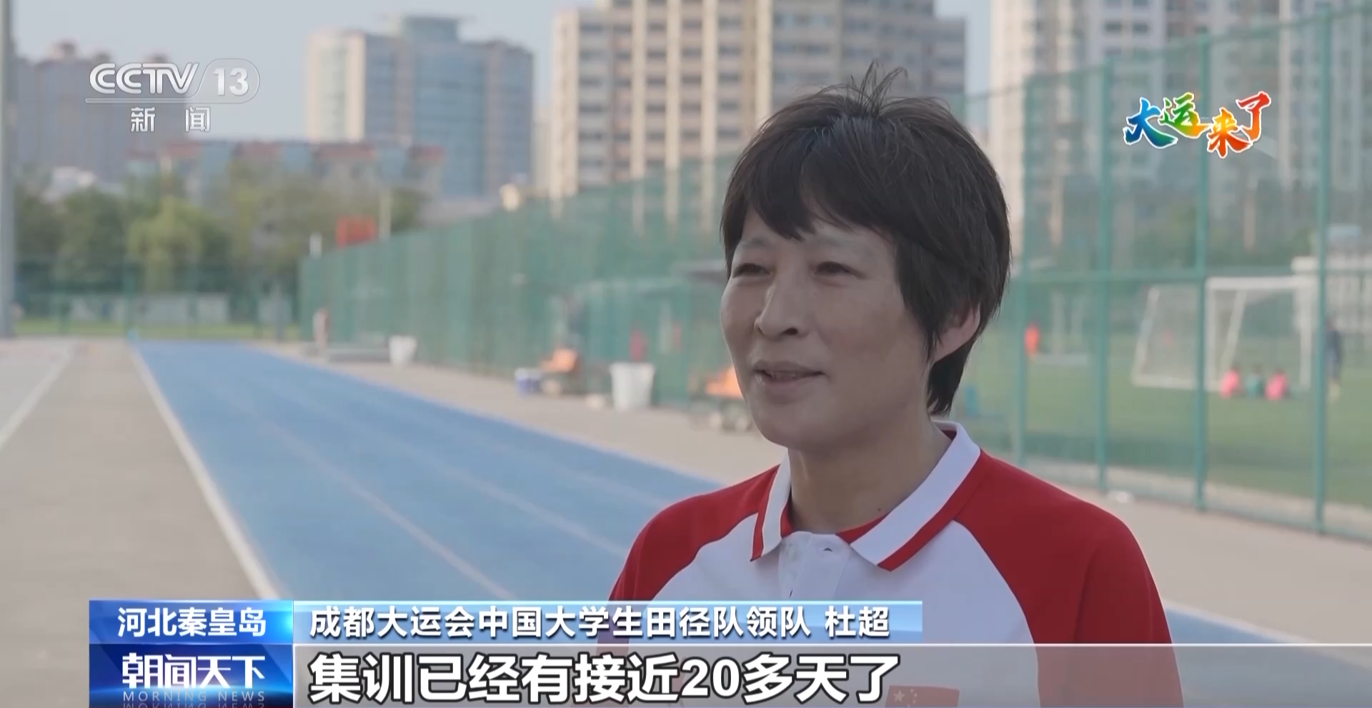成都大运会中国大学生田径队领队 杜超:应该说在历届里是规模最大,水平也是最高的一届。集训已经有接近20多天了,目前队员的状态表现也非常不错,同学们的热情非常饱满,并且训练态度非常积极,整个训练状况良好。