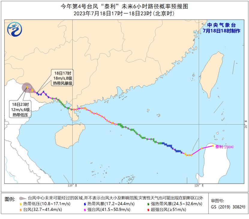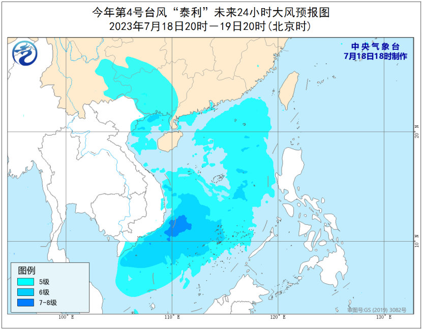 7月18日20时至19日20时,北部湾大部、南海大部、西沙群岛、中沙群岛及黄岩岛附近海面、南沙群岛以及广东南部沿海、广西沿海及广西中西部、云南东部、贵州南部等地将有5-6级风、阵风7-8级,其中,南海西南部部分海域将有7-8级大风、阵风9级。