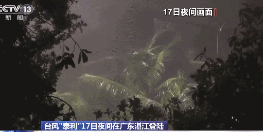 ·湛江:17日22时20分前后,台风“泰利”以巅峰强度从湛江南三岛沿海登陆,中心附近最大风力达13级。风雨大作,户外难以正常出行。当地消防救援、应急供电等部门提前进行布防,防止内涝。湛江的跨海大桥停止开放,船舶人员转移安置。工地提前停工,人员转移暂避;