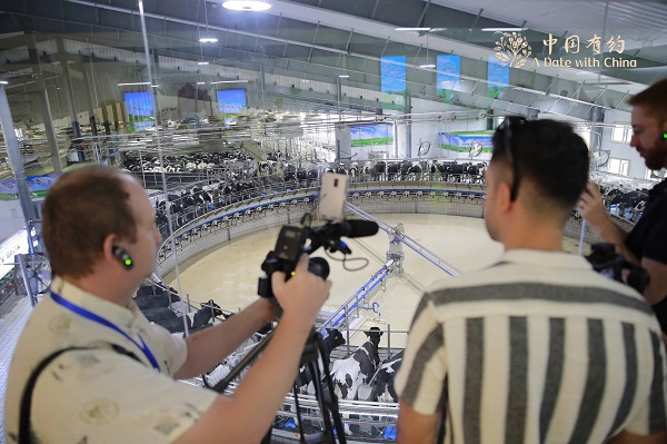在伊利现代智慧健康谷,壮观的现代化生产场面吸引了中外记者的目光。在灌装车间,不时有记者发出感叹:“速度真快”“太震撼了”。车间内的超高速灌装机,灌装速度可达到40000包/小时。