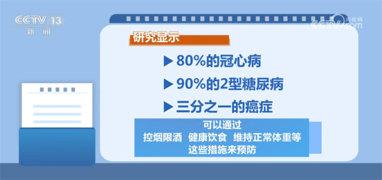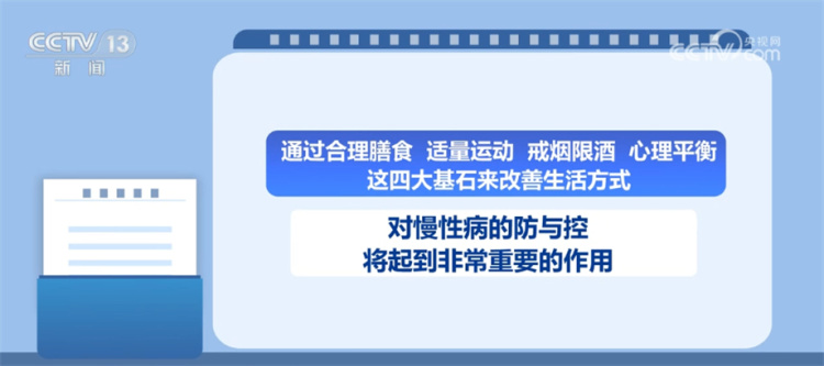 专家表示,在世卫组织向全球发布的健康公式中,影响健康的因素,个人生活方式占60%、遗传占15%、环境因素占17%,而医疗服务因素仅占8%,生活方式是最可被控制以及最有影响力的因素。通过合理膳食、适量运动、戒烟限酒和心理平衡这四大基石来改善生活方式,对慢性病的防与控将起到非常重要的作用。研究显示,80%的冠心病、90%的2型糖尿病、三分之一的癌症可以通过控烟限酒、健康饮食、维持正常体重等这些措施来预防。