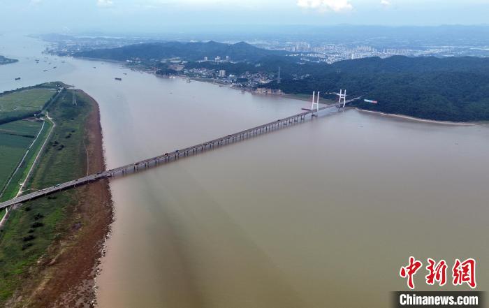 2023年7月19日,航拍江西湖口县鄱阳湖入长江之口,水位下降痕迹明显。 徐会刚 摄