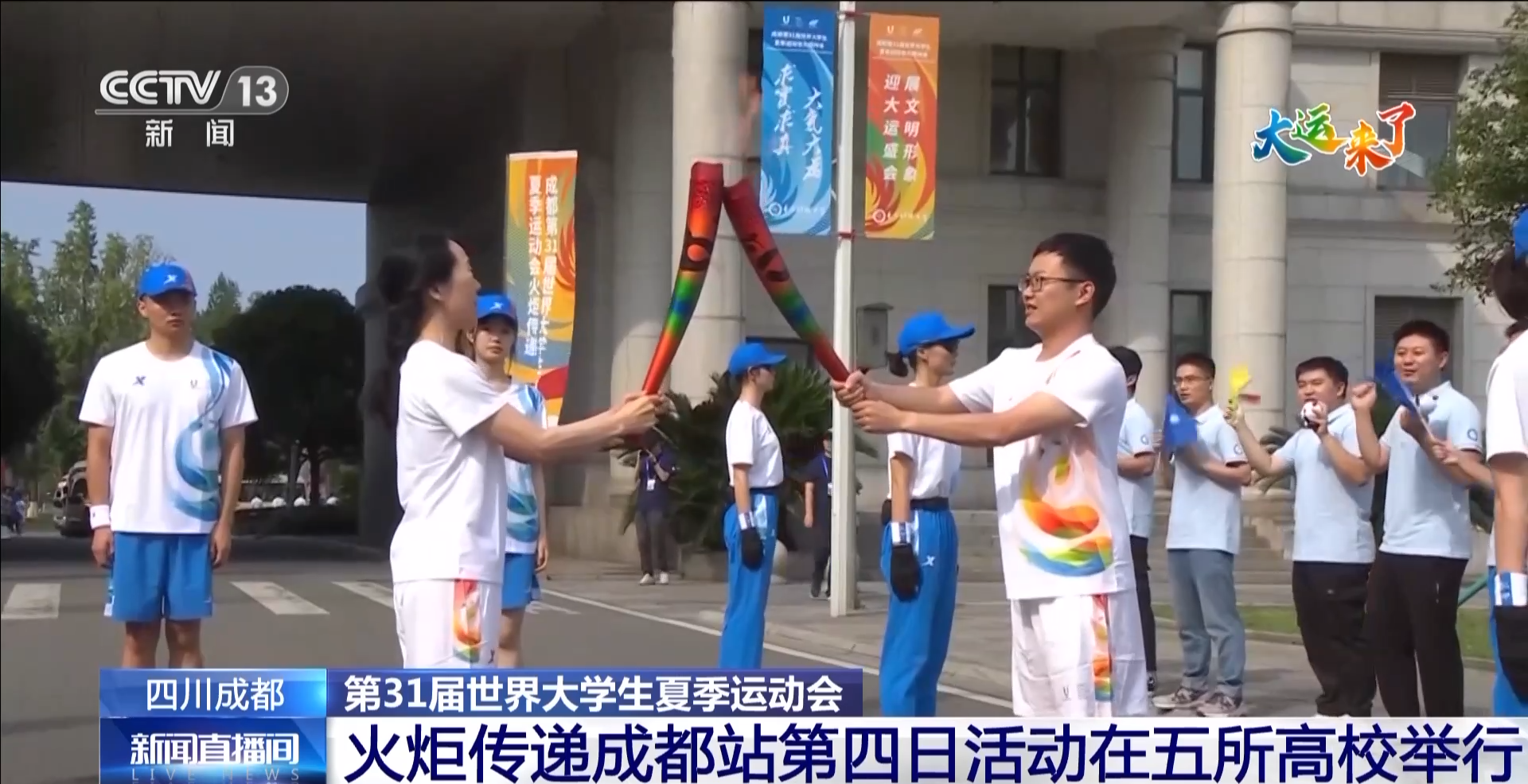今天(7月20日),第31届世界大学生夏季运动会火炬传递成都站第四日活动在五所高校举行。