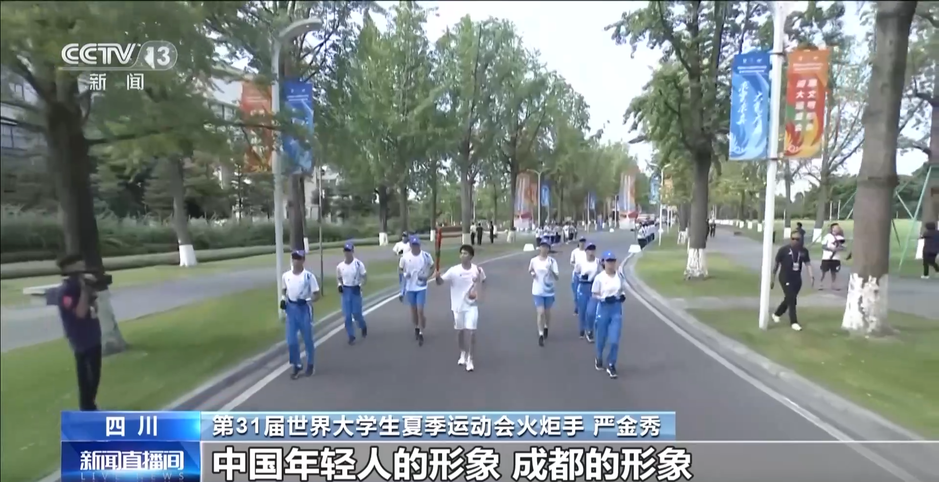 总台记者 黄鹂:我现在所在的位置是电子科技大学清水河校区,这里也是今天火炬传递的第一站。我们在现场可以看到第一棒火炬手跳水奥运冠军任茜接过了被点燃的大运会火炬“蓉火”,并高擎火炬,开始了第31届世界大学生夏季运动会火炬传递成都站第四日活动的起跑。