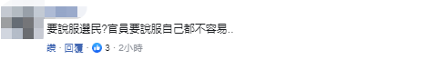 对此,有岛内网友表示,“要说服选民?官员要说服自己都不容易。”↓