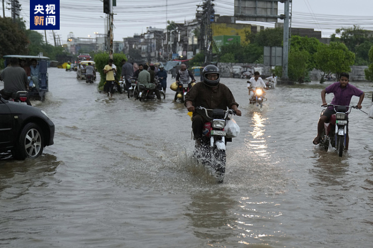 △当地时间7月5日,旁遮普省首府拉合尔的街道被水淹没。