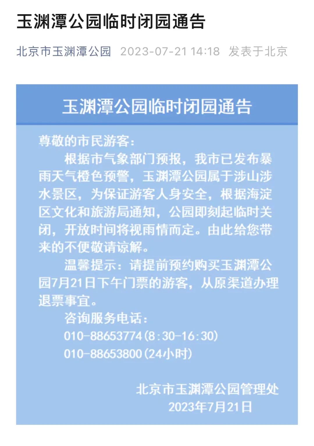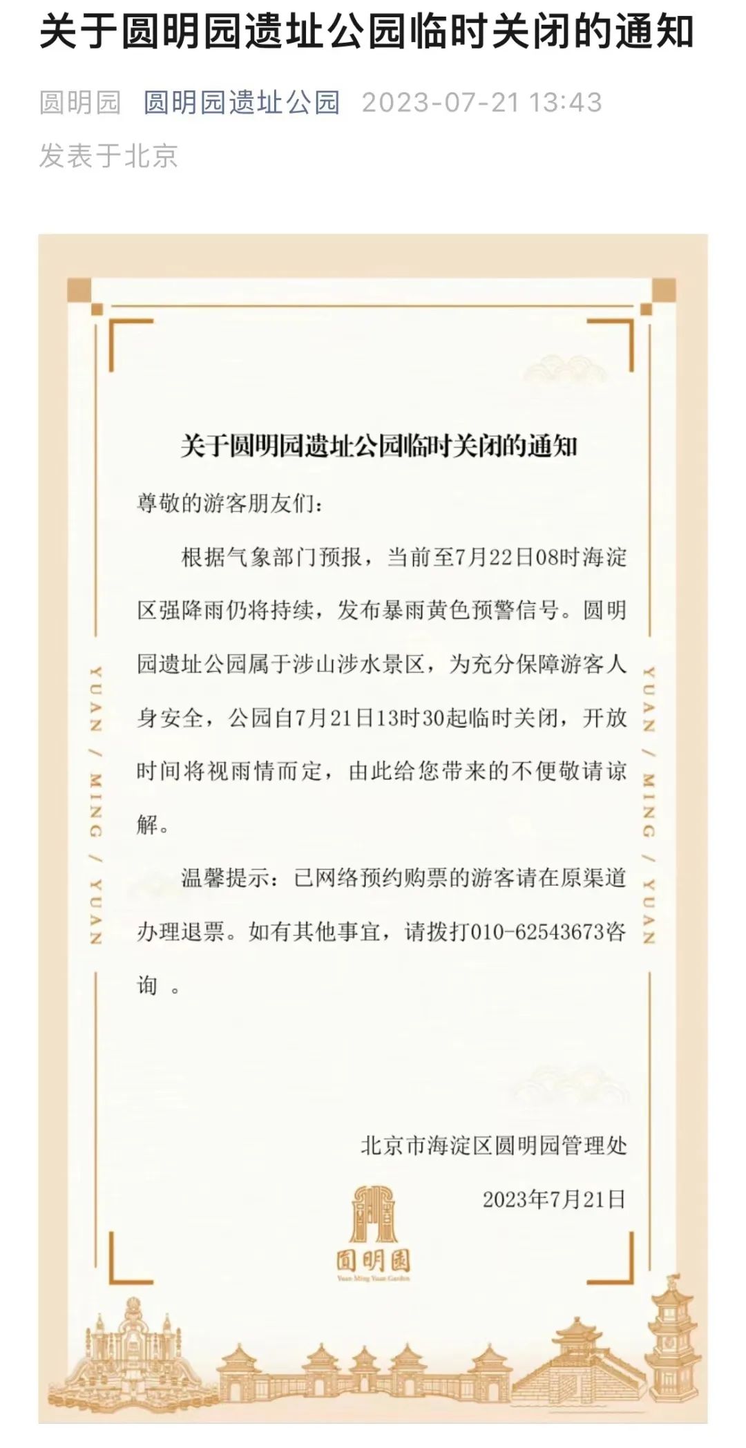 相继发布闭园公告